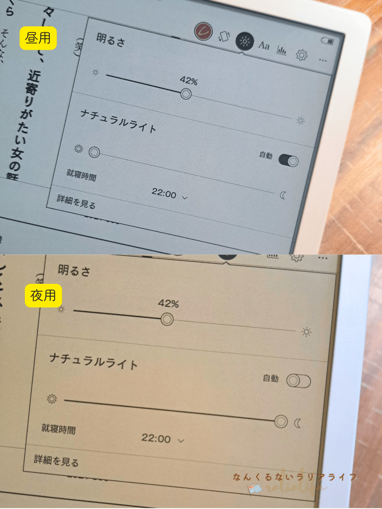 タブレットほど鮮やかな発色ではありませんが、紙の本に近い落ち着いた色味なので、長時間読んでも目が疲れにくいのが特徴です。