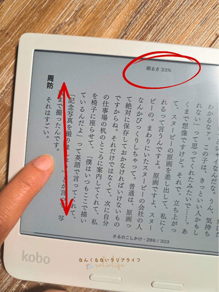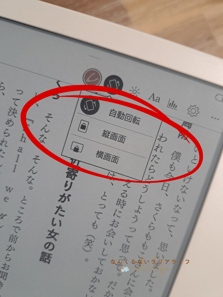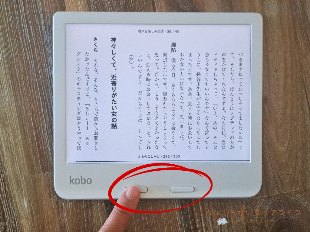やはり物理ボタンがある『Kobo Libra Colour』では、片手でサクサク読めるので、通勤・通学中や寝転びながら読むときにも便利です。
