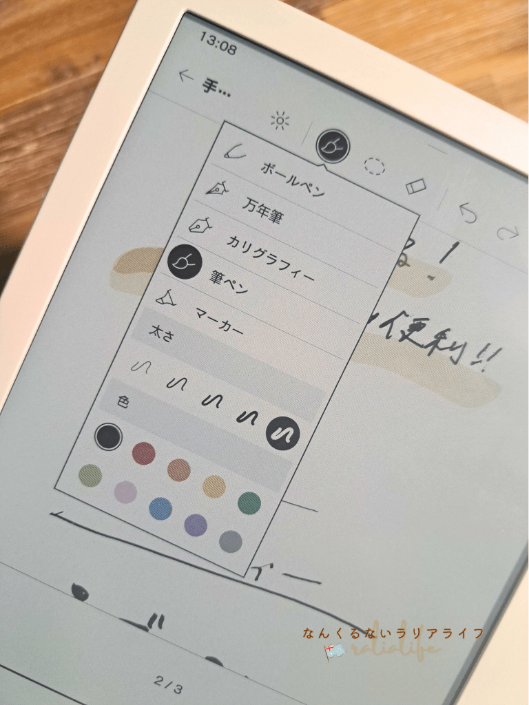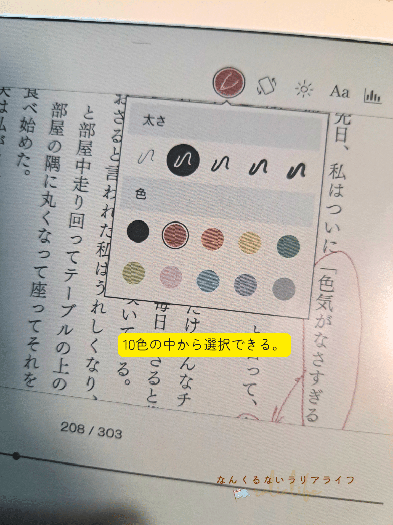 しかも、『Kobo Libra Colour』ではペンの色が10色。太さの調整までできるのは驚き。