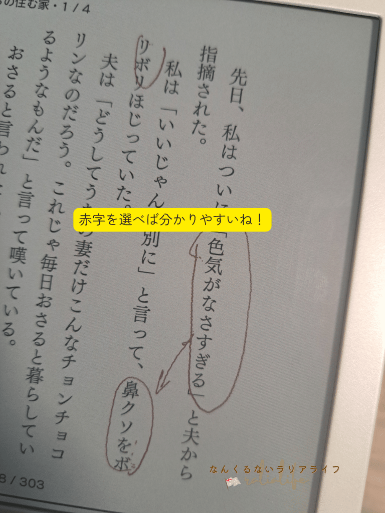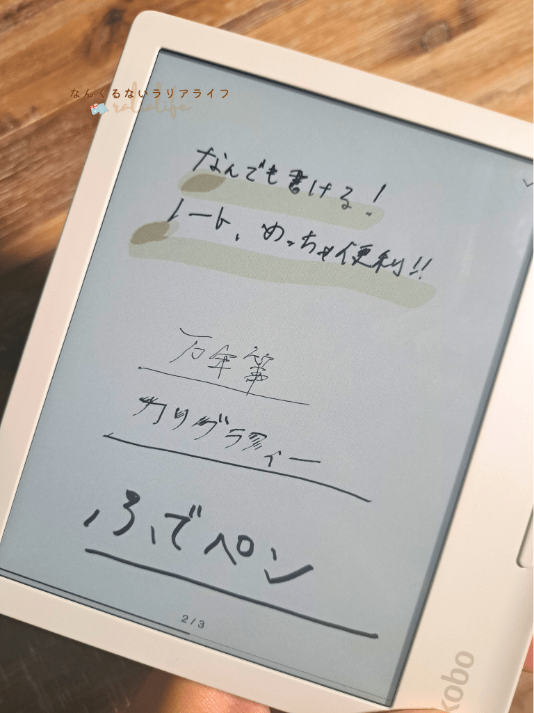その点、『Kobo Libra Colour』でメモ書きしたものを消したくなれば、後々消せますし、書き込みしたページを見返すのも簡単です。