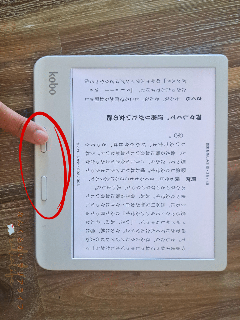 『Kobo Libra Colour』では画面タップではなく、側面の物理ボタンでページ送りができます。
