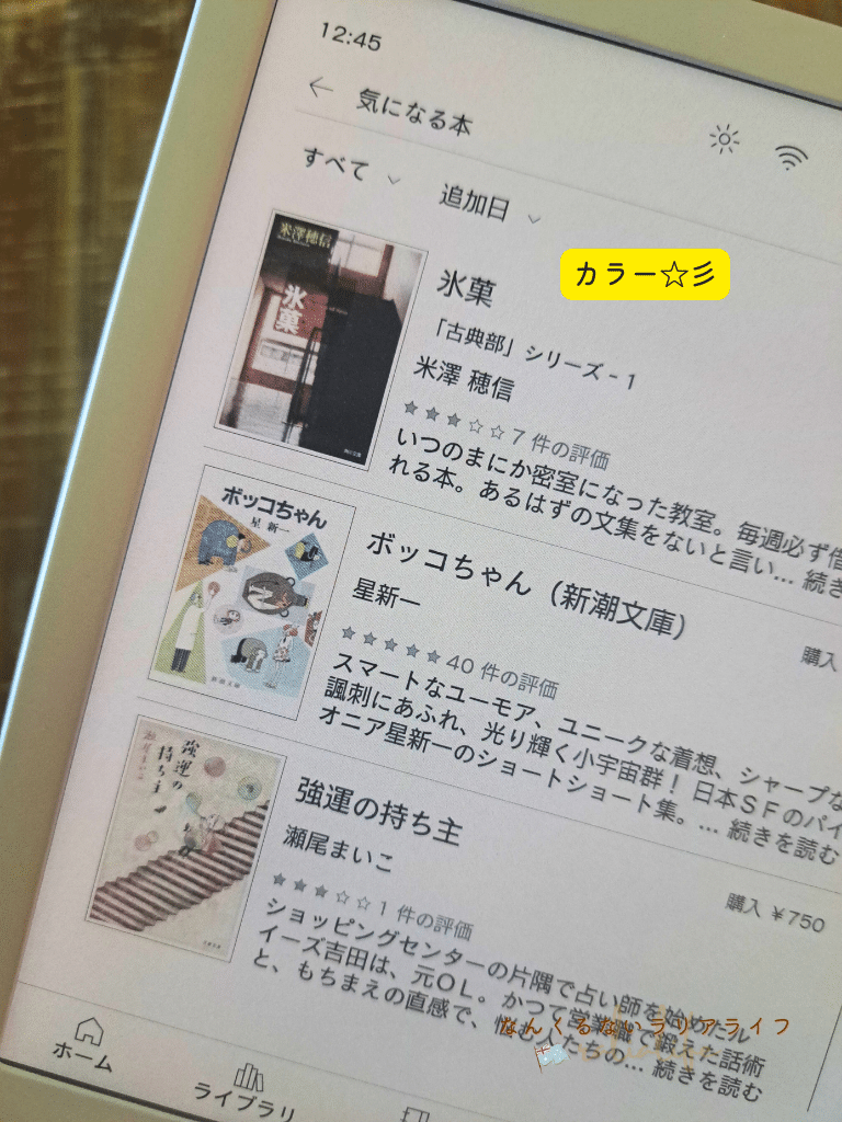 私は小説を中心に電子書籍リーダーを使いたかったので、カラー対応はしていてもしてなくてもどっちでもいいと思っていました。